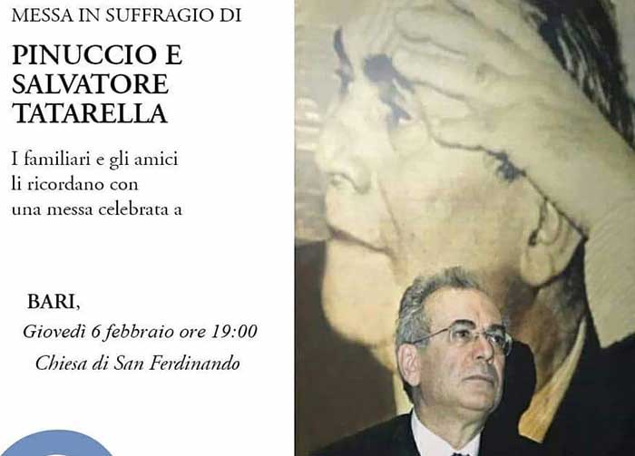 Giovedì 6 febbraio, alle ore 19:00, a Bari, familiari e amici ricorderanno con una messa in suffragio nella Chiesa di San Ferdinando i fratelli Pinuccio e Salvatore Tatarella.