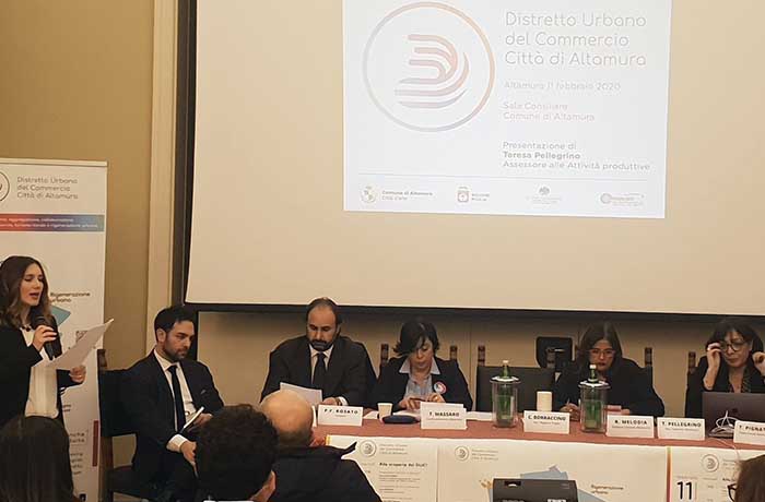 L’Assessora al bilancio ed alla programmazione economica e attività produttive del Comune di Altamura Teresa Pellegrino ha introdotto gli obiettivi e le finalità del DUC di Altamura: «Il Distretto Urbano del Commercio di Altamura è partito, abbiamo individuato l’area di interesse che riguarda prevalentemente il centro storico. È nostra intenzione migliorare gli spazi pubblici attraverso la riqualificazione urbana, rilanciare i consumi in città, incrementare la sinergia tra il Comune e i soggetti privati, dare una spinta propulsiva al turismo della nostra Altamura».
