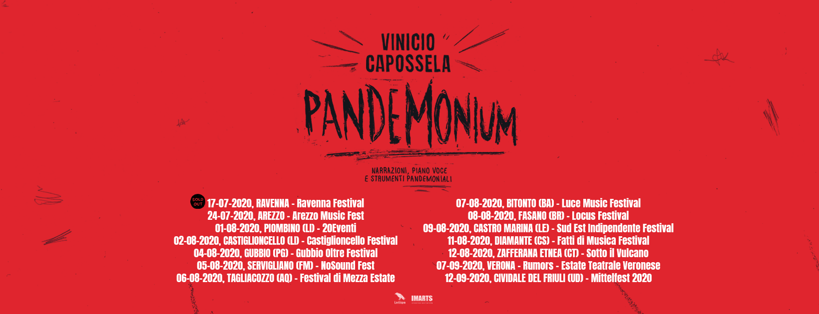 Ma il Pandemonium è anche uno strumento musicale:”Ho sentito parlare di questo enorme strumento, un grande organo fatto di metalli estratti dalle viscere della terra, dalle creature intraterrestri, i nani che battono e forgiano nelle cavità ctonie, il cui rimbombo ci raggiunge col brontolare del tuono, e provoca il frastuono”, dichiara Vinicio Capossela.