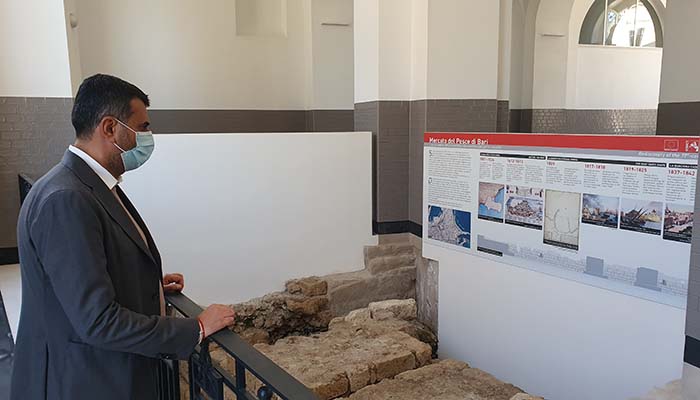 “Quello che nell’accezione comune è sempre stato chiamato l’ex Mercato del pesce, ora per noi sarà il nuovo Mercato del pesce – spiega il sindaco Decaro – perché con la fine dei lavori del primo lotto, quando i baresi potranno tornare a vivere i luoghi e i contenitori della città qui troveranno uno spazio nuovo, mai visto primo che è stata restaurato completamente, nelle parti coinvolte dalla progettazione del primo lotto, e che assumerà funzioni nuove rispetto al passato. Finalmente la grande gru che occupava una parte importante della piazza oggi è andata via perché i primi lavori sono terminati e nei prossimi giorni sparirà anche la recinzione che copriva la facciata. Così il nuovo edificio si mostrerà completamente ai cittadini nella nuova facciata restaurata e l’intera piazza sarà restituita alla fruizione collettiva. Purtroppo le limitazioni legate all’emergenza sanitaria non ci permetteranno di organizzare una vera inaugurazione, a cui stavamo già lavorando con l’organizzazione di eventi espositivi di rilievo nazionale. Ma siamo fiduciosi di poter rimandare l’evento ai prossimi mesi e nel frattempo continueremo a lavorare alle procedure amministrative che ci permetteranno di affidare la gestione della zona del piano terra che manterrà la sua vocazione commerciale, come era nel passato, ma in chiave moderna con uno spazio riservato al food e alle eccellenze dell’enogastronomia pugliese.  In questa zona è stato possibile anche recuperare i ritrovamenti della banchina dell’antico porto di Bari, una traccia della memoria dei luoghi della nostra città che grazie alla Soprintendenza e e all’impresa che ha condotto i lavori, è stata recuperata ed esposta in sicurezza, integrata con il nuovo edificio. Questo è il terzo tassello di quello che abbiamo imparato a conoscere come polo delle arti e del contemporaneo di Bari, un luogo che per posizione, al centro tra i due spazi espositivi e culturali, e per funzione si lascerà maggiormente attraversare dai cittadini e dai tanti turisti che speriamo torneranno nella nostra città quando ci saremo messi questo periodo terribile alle spalle”.
