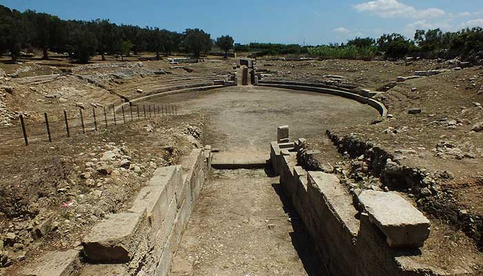 Il percorso di visita di Rudiae prende avvio dall’area di Fondo Acchiatura. Qui è possibile visitare le strutture archeologiche messe in luce nel corso dei vecchi scavi degli anni ’50, ovvero le due strade basolate ortogonali, il luogo di culto e l’ipogeo ellenistico, al quale non è possibile accedere. Dopo aver visitato i resti archeologici di Fondo Acchiatura, il percorso prosegue sul lato nord dove un varco nel muro a secco consente un’affascinante veduta dall’alto dell’anfiteatro al quale si accede mediante una rampa di scale in acciaio situata in corrispondenza dell’ingresso sud del monumento; il sito è parzialmente fruibile anche per persone con disabilità motoria, poiché è presente un percorso semi-sterrato lungo il lato est che, attraverso una rampa in terra, permette di scendere nell’anfiteatro dall’ingresso nord. La visita, supportata dal virtual tour su tablet e da pannelli con foto, ricostruzioni virtuali e illustrazioni grafiche, permetterà di scoprire tutte la fasi di vita e monumentalizzazione dell’area, a partire dall’Età messapica, quando fu realizzata la cisterna (lacus) per la raccolta delle acque meteoriche, fino ad arrivare alla costruzione dell’anfiteatro nei primi anni del II sec. d.C., durante il regno di Traiano. In seguito, si risale dalla rampa in terra e da lì si percorre la stradina perimetrale che consente una vista stupenda del settore ovest, dove è possibile osservare la stratificazione delle strutture del lacus, dell’anfiteatro e del muretto a secco ottocentesco, impreziosita dalla presenza degli ulivi. Oltre agli aspetti archeologici, il sito, distante dall’inquinamento acustico della città, è caratterizzato da un silenzio suggestivo, interrotto solo dal frinire delle cicale, e dagli aromi delle presenze botaniche mediterranee (timo, rucola a fiori bianchi, orchidee, ecc.), in grado di sviluppare molteplici percezioni sensoriali.