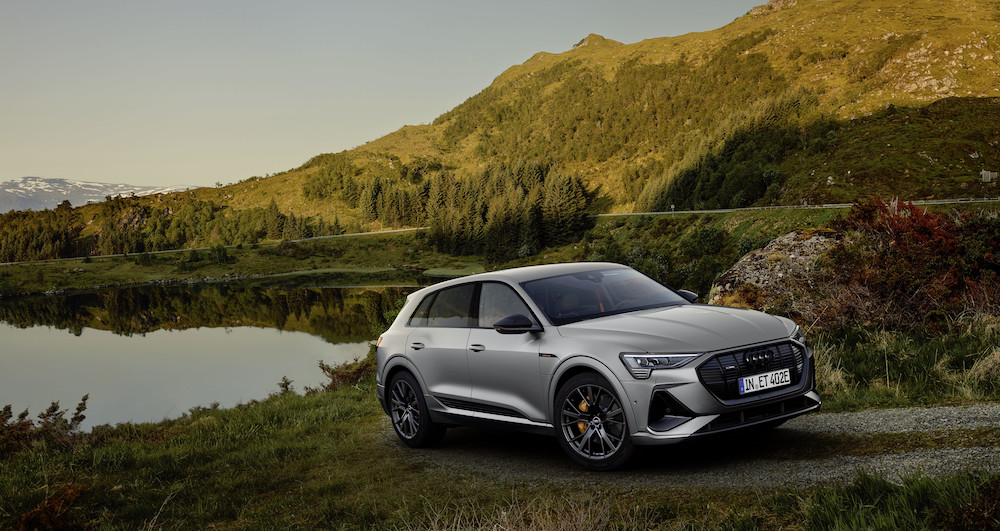 Presentata la nuova edizione “S line black” per Audi e-tron e Audi e-tron Sportback. Una versione che evidenzia la natura sportiva dei modellie-tron completamente elettrici. Per il modello in edizione, il single frame così come i quattro anelli, le custodie degli specchietti laterali e i badge e-tron sono tutti in nero. Audi Sport fornisce le ruote da 21”, anch’esse nere, a contrasto con le pinze dei freni arancioni. Il sedile posteriore ha vetri oscurati e sono disponibili le nuove ed esclusive finiture metalliche opzionali grigio Chronos, bianco Glacier e nero Mythos. Le luci a LED sul lato inferiore delle porte proiettano le parole ” e-tron black edition” sulla strada quando la porta viene aperta.
