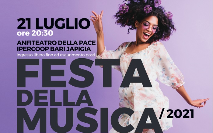 Tutto pronto per la nuova edizione della “Festa della Musica” che si terrà il prossimo 21 luglio all’Anfiteatro della Pace nei pressi dell’Ipercoop di Bari Japigia. La manifestazione si svolge dal 1985 in molte città di Europa e del mondo ogni 21 giugno ma quest’anno ha subito un ritardo a causa dell’emergenza Covid-19.