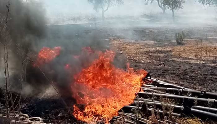 L’ennesimo incendio nelle campagne in agro di Noicàttaro è stato domato grazie all’intervento della Polizia Locale e dei Vigili del Fuoco. Gli agenti del comando di Polizia Locale, infatti, poco dopo le 15 di venerdì 13 agosto sono intervenuti in contrada Paradiso in cui, dalla combustione delle tubazioni utilizzate per l’irrigazione, si stavano sprigionando fiamme, a pochi metri da un terreno di coltivazione di uva allestito con i tendoni in plastica.