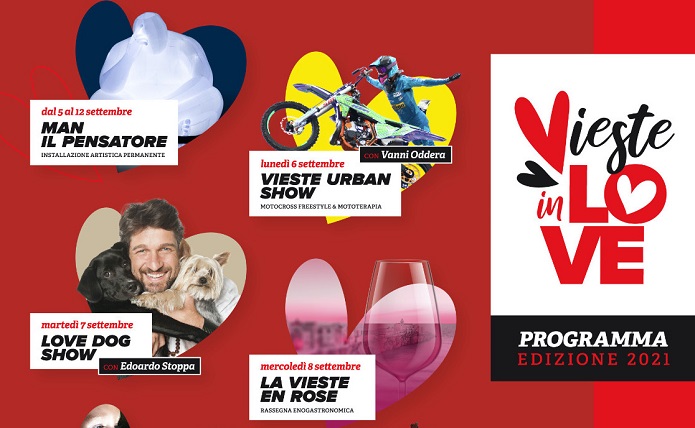 Una rassegna di eventi e allestimenti a tema amore. Un ciclo di eventi pensato per offrire un’opportunità in più ai turisti e ai residenti. Vieste in Love è pronta per la sua seconda edizione. Dopo il successo del 2019, torna la kermesse più attesa dell’estate pugliese nella terra dell’amore eterno. Non solo Cristalda e Pizzomunno, ma mille declinazioni dell’amore, nel corso di otto giorni tutti da vivere.