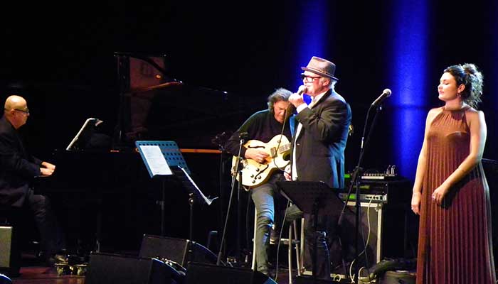 Il concerto (vecchio progetto di un paio di anni fa opportuno aggiornato) si è sviluppato come una trasmissione radiofonica di RMC, con la differenza che le canzoni sono state eseguite tutte dal DJ di Glasgow. Si è stabilito d’impulso col pubblico un clima di estrema cordialità, tanto sincera quanto immediata, frutto di un atteggiamento sempre accattivante e mai ruffiano. Come il brano d’apertura, quel “Cantaloupe Island” di Herbie Hancock che gronda funky sulle note dei fiati. E come quando Nick ha spiegato da dove deriva il suo nomignolo, Nightfly (mosca della notte), ripreso dal titolo omonimo del primo album interamente digitale, inciso nel 1982 da Donald Fagen ex Steely Dan. E di quel disco Nick ha cantato “Walk Between Raidrops”, per passare poi alla celebre “Last Train Home” di Pat Metheny, eseguita da Onorato con la sua chitarra Yamaha G10 a fiato. A seguire la “Lovely Day” di Bill Withers, con la platea totalmente coinvolta nei cori; “This is not America”, un successo di David Bowie, “Gente distratta di Pino Daniele, grande amico di Nick, la delicatissima “Fragile” di Sting, “You Might Need Somebody” di Randy Crawford, superbamente interpretata da Maggie. La serata se ne ne è andata su questi toni, tra una divagazione di Nick e una raffinatezza di Maggie, tra un assolo sanguigno di sax e una finezza di pianoforte, tra un pezzo dei Crusaders (“Soul Shadows”) e uno di George Benson (“Give me the Night”), tra “Midnight pasta” e “Be Yourself” scritte da Nick e cantate in coro col pubblico. Un trionfo annunciato, e l’esatta realizzazione di quel “Around Jazz” del Forma: la musica leggera che strizza l’occhio al jazz e il jazz che strizza l’occhio alla musica leggera.