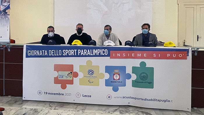 Lecce ospiterà venerdì 19 novembre, alla Villa Comunale (dalle 9 alle 13), la “Giornata dello Sport Paralimpico – Insieme si può”, penultima tappa del tour regionale per la ripresa del progetto “Scuola, Sport e Disabilità”, promosso e realizzato dalla Regione Puglia, dal Comitato Italiano Paralimpico Puglia, dall’Ufficio Scolastico Regionale della Puglia e dall’Università di Foggia.