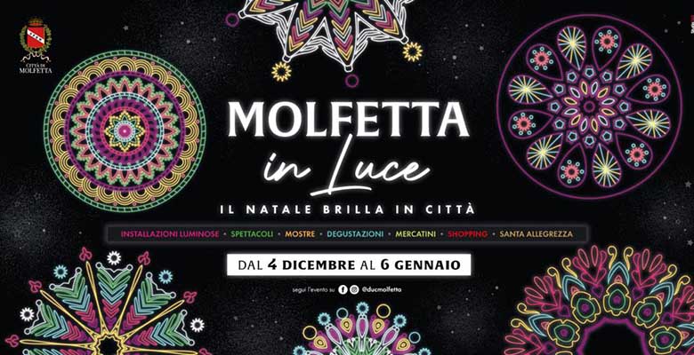 Il calendario di eventi è organizzato dal Comune di Molfetta, gli assessorati al Marketing territoriale e alla Cultura e dal Distretto urbano del commercio (DUC) cittadino. La ricca rassegna del periodo natalizio, che si snoda in oltre sessanta iniziative, intende favorire l’accesso del grande pubblico alle vie dello shopping, tra mille luci e colori delle luminarie d’autore, il cui progetto è sotto la direzione artistica di Elio ColasantoUn ricco calendario di spettacoli e mostre, animazione e musica per grandi e piccini quello che ci attende, pronto ad emozionare e ricreare la magia del Natale. Senza tralasciare uno sguardo agli ultimi della terra, necessario in questo periodo così particolare.