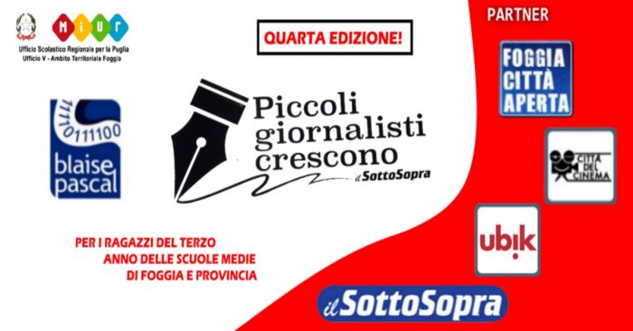 Pertanto le redazioni dei giornali ilSottosopra dell’ITE B. Pascal e di Foggia Città Aperta – in collaborazione con l’Ufficio Scolastico Territoriale di Foggia – Ufficio V (ex provveditore), La Città del Cinema e la libreria Ubik nel ricordo di Pier Paolo Pasolini lanciano il tema del concorso “Piccoli giornalisti crescono” per il mese di Marzo con le sue parole: 《Nel tempo dell’inganno universale, dire la verità è un atto rivoluzionario.》Pier Paolo Pasolini