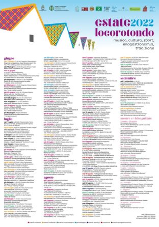 Un programma ricco e variegato che abbraccia la musica con gli immancabili appuntamenti del Locus Festival, VIVA Festival e Musica in Festival; la cultura con le interessanti letture proposte da Libri nei vicoli del Borgo e le letture per bambini in contrada; lo sport con il tradizionale Trofeo San Rocco; l’enogastronomia con i nostri prodotti locali e la tradizione che spazia dalla Festa Patronale di San Rocco alla ripresa dei “bàlle de fuòre” in campagna. Tra le nuove proposte il concept di PensieriCorrenti e le collaborazioni con il Conversatorio “Nino Rota” di Monopoli, queste ultime anche con concerti all’alba nella Villa Comunale.