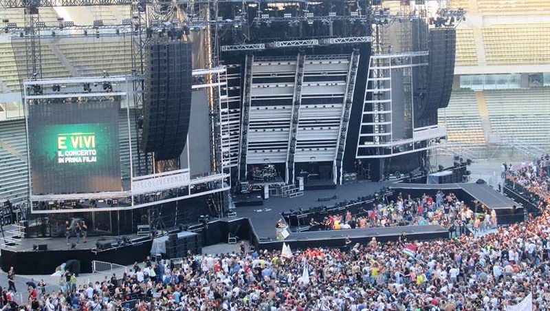 Dopo Trento, con la carica dei 120.000 fan per l’evento che ha dato il calcio di inizio alla stagione estiva dei concerti, ci sono state Milano all’ippodromo in 81.000, il ritorno a Imola (che libidine) 86.000cuori. A Firenze, la Visarno Arena stracolma con i 65.000 (scatenati), a Napoli, straordinario il Maradona Stadium con i 45.000 (intonatissimi) tifosi. E poi Roma, al Circo Massimo per 140.000 entusiasti per due sere consecutive nell’arena dei gladiatori, in una cornice unica al mondo. Che dire di Messina con il suo record regionale dei 41.000. Il calore della Puglia creativa a Bari in 50.000, ad Ancona il concerto inizia al calare del sole, un tramonto spettacolare avvolge lo stadio straripante di adrenalina, in 33.000. Per chiudere a Torino all’Olimpico, questa sera 30 giugno, sold out per 40.000.