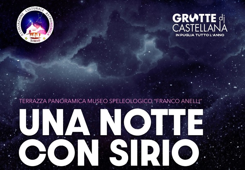 Osservare il cielo e imparare a conoscerlo, un’esperienza emozionante per adulti e bambini presso la terrazza panoramica del Museo Speleologico “Franco Anelli”. Si rinnova anche quest’anno l’appuntamento con “Una notte con Sirio”, iniziativa di ACAS (Associazione Culturale Astronomica Sirio), responsabile dell’Osservatorio Astronomico sito alle Grotte di Castellana (Ba), che propone un ricco calendario alla scoperta dell’astronomia e dei corpi celesti.