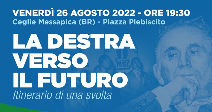 Venerdì 26 agosto alle 19.30 a Ceglie Messapica (BR) la presentazione del libro inedito di Pinuccio Tatarella “La destra verso il futuro. Itinerario di una svolta” aprirà la prima serata della kermesse di Affari Italiani, “La Piazza “, promossa dal direttore Angelo Perrino.