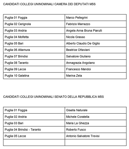 HomePoliticaElezioni: M5S presenta i suoi candidati nei collegi uninominali in Puglia