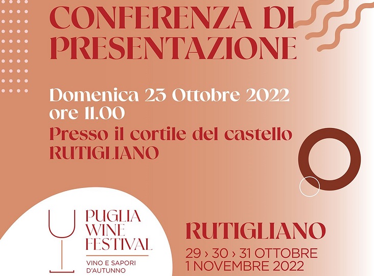Sarà presentato ufficialmente domenica prossima, 23 ottobre 2022, il programma del Puglia Wine Festival che per la sua 3^ edizione fa tappa nella suggestiva cittadina di Rutigliano.