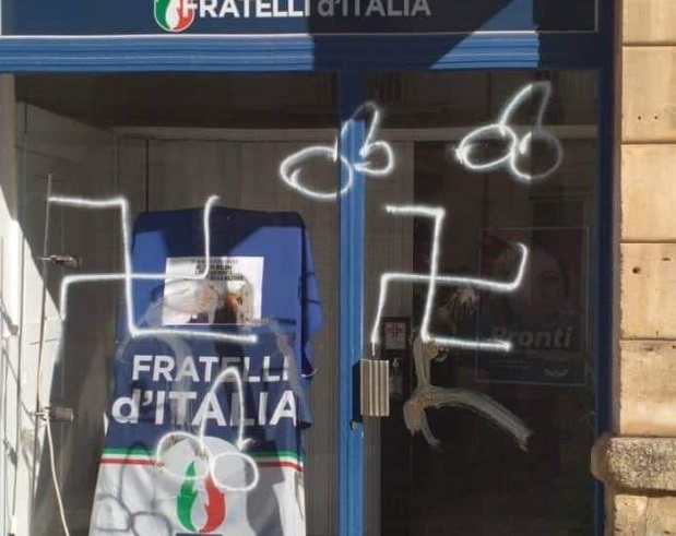 “Chi ha imbrattato la sede di Fratelli d’Italia di Putignano, con svastiche e simboli osceni, non ha compiuto solo un atto vandalico, ma un gesto di odio, che noi respingiamo al mittente perché la stupidità di pochi non deve mai mettere in discussione il dialogo e il rispetto reciproco”.