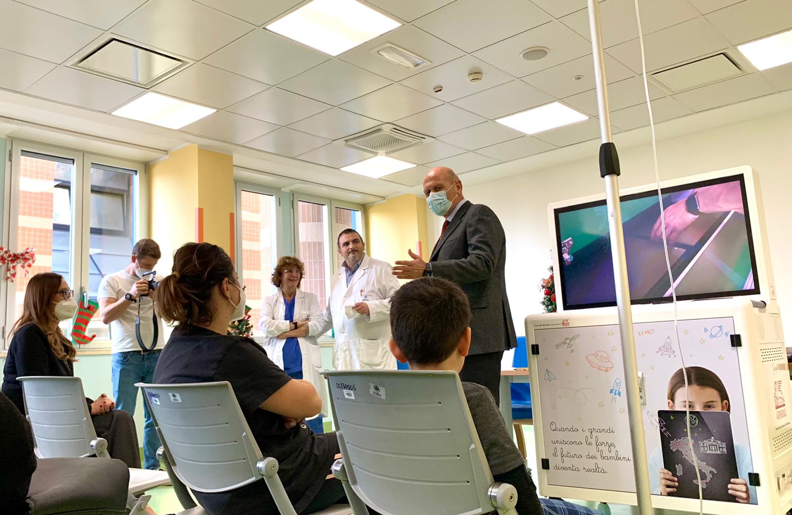 Nella giornata di ieri è stato inaugurato presso l’ospedale pediatrico Giovanni XXIII di Bari l’“ABF Digital Lab”, progetto educativo della Andrea Bocelli Foundation a supporto delle scuole in ospedale. La Fondazione ha donato al reparto pediatrico l’“ABF Teachbus”, una struttura dotata di tablet e computer per la didattica a distanza insieme alla piattaforma “ABF Educational”, che offre l’accesso a una ricca selezione di contenuti educativi. Il progetto è stato ideato dall’Andrea Bocelli Foundation (ABF) ed è promosso con il supporto di Generali e dei suoi agenti per supportare i bambini e i ragazzi dei reparti di lunga degenza degli ospedali pediatrici italiani.