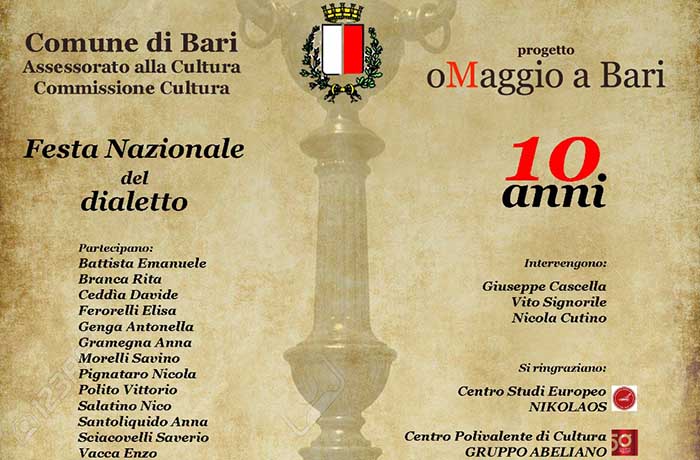 Torna martedì 17 gennaio, a partire dalle ore 19, al teatro Abeliano di Bari, la tradizionale Festa nazionale del dialetto che si propone il fine di salvaguardare e valorizzare le espressioni appartenenti al nostro patrimonio culturale immateriale.