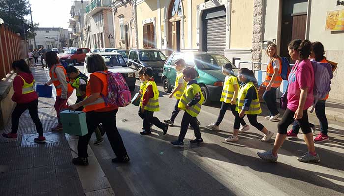 Il progetto prevede una serie di interventi innovativi e sperimentali per attivare i servizi di piedibus scolastico per alcune scuole cittadine per offrire agli alunni delle scuole elementari e medie inferiori una forma alternativa di trasporto scolastico: accompagnare a piedi bambini e ragazzi nel tragitto casa scuola in tutta sicurezza.