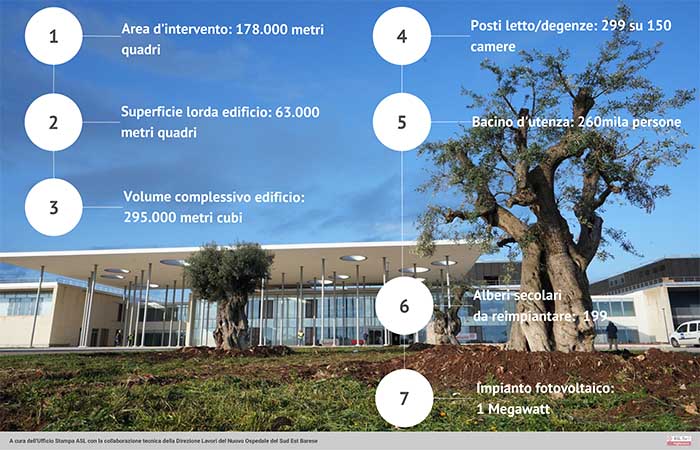 Avanza la realizzazione del nuovo Ospedale di Monopoli-Fasano. Secondo il report mensile della Asl Bari sullo stato dell’opera si sono concluse le lavorazioni edilizie delle 134 degenze del piano terra, proseguono i lavori per le restanti 165 situate al primo piano e già in avanzato stato di completamento e allestimento. Le lavorazioni progrediscono sia all’interno dell’edificio principale sia all’esterno, nelle aree perimetrali e nei parcheggi.