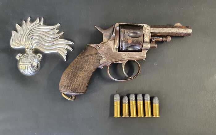 L’uomo è stato trovato in possesso di una vecchia rivoltella, perfettamente funzionante, con matricola abrasa e con nel tamburo 6 munizioni pronte a far fuoco.