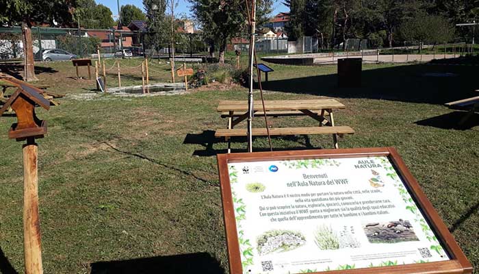 Il progetto Aule Natura, che trasforma il tradizionale giardino naturale, in una vera e propria aula, è stato lanciato dal WWF nel settembre 2020, dopo il primo lockdown, e dal 2021 è sostenuto da P&G, con l’obiettivo di realizzare, entro il 2024, almeno 50 Aule Natura in tutta Italia.