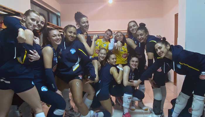 “Sono molto soddisfatto della prova delle ragazze – afferma coach Paolo Totero – che hanno risposto benissimo a questa gara dopo una settimana complicata ma molto intensa di lavoro e impegno. Il divario tra i due roster era importante ma il rischio di distrazioni ed errori era alto. Ed invece l’attenzione messa in campo è stata perfetta e tutto è andato come da copione”. Ottima prova in prospettiva futura e piena soddisfazione da parte della società “Sono convinta che una grande squadra si vede nei momenti delicati –afferma il ds Micaela Cofano – del campionato. Il doppio scivolone delle ultime gare ci ha fatto riflettere molto e i risultati si sono visti subito. L’infortunio del nostro capitano ha decisamente complicato le cose ma la risposta in quel di Crotone è stata da grande squadra. Dedichiamo questa vittoria a Chiara che le ragazze hanno volito omaggiare tatuando il suo numero sulle loro braccia all’interno di un cuore. Il cuore di un grande gruppo”.