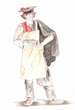 La maschera riprendere l’identità e i caratteri connotativi del comune leccese: Monteroni, oggi ad alta vocazione universitaria per cui ospita il grande complesso Ecotekne di UniSalento, città aperta alla cultura e all’accoglienza di numerosi studenti, ricercatori e docenti; in passato fortemente legata all’attività artigianale e, in particolare, alla lavorazione delle scarpe (tanto da meritarsi la comunità il titolo di “scarpa pulita”) e un’elevatissima presenza di aziende del settore calzaturiero e professionisti calzolai autonomi.