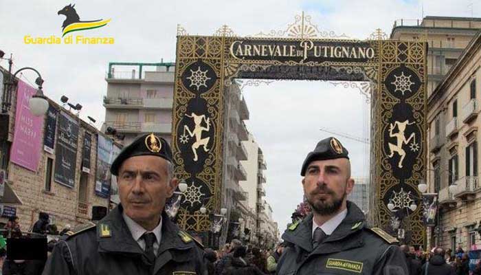 In occasione della 630ª Edizione del “Carnevale di Putignano”, il Comando Provinciale della Guardia di Finanza di Bari, insieme alle altre Forze di Polizia, ha disposto un mirato dispositivo di controllo economico del territorio per assicurare il regolare svolgimento dell’importante manifestazione di livello nazionale che ha visto la partecipazione complessiva di oltre 85 mila persone nel corso delle quattro giornate di sfilate dei carri allegorici.