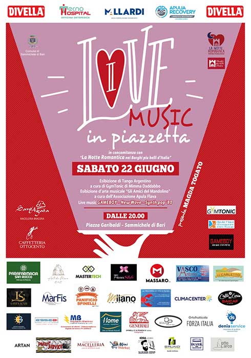 A Sammichele di Bari, in occasione della βNotte Romantica nei Borghi piΓΉ belli dβItaliaβ, Γ¨ in programma sabato 22 giugno dalle 20.00 a mezzanotte una speciale serata per celebrare lβamore.