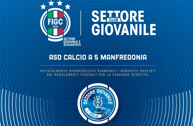 Un importante riconoscimento alla grande attività che il Vitulano Drugstore Manfredonia ha svolto in questi anni: i sipontini sono stati riconosciuti come Club di Primo Livello dalla FIGC – Settore Giovanile Scolastico per la stagione sportiva 2022/23.