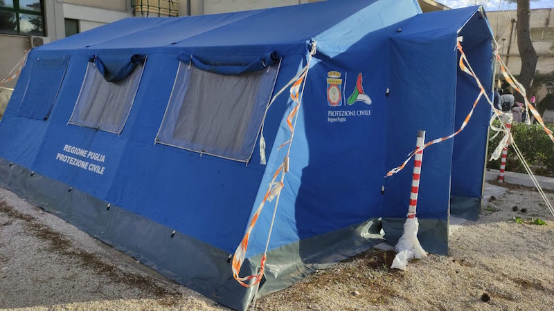 Un raduno a Torre dell’Orso dei volontari della Protezione Civile per fare il punto della situazione sugli interventi fatti e su come si muoverà la macchina dei soccorsi italiani.