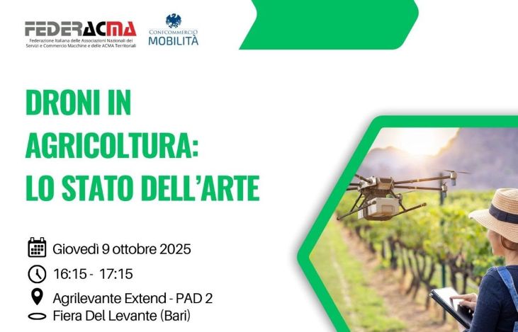 L’iniziativa, promossa da Federacma – Federazione Confcommercio delle associazioni nazionali dei rivenditori di macchine agricole, operatrici e da giardinaggio – si inserisce nel programma di Agrilevante 2025, manifestazione di riferimento per l’agricoltura del Mediterraneo organizzata da FederUnacoma. L’incontro approfondirà il ruolo dei droni nella gestione sostenibile delle colture, nel monitoraggio avanzato e nella digitalizzazione delle pratiche agronomiche, ponendo l’attenzione anche sugli strumenti legislativi necessari per favorirne l’adozione su larga scala.
