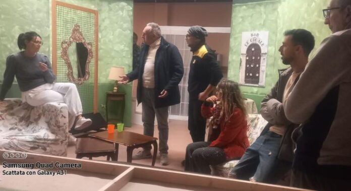 Sul palco Antonio Bosco (Giovanni); Micaela Pupillo (Michela); Gabriele Lo Russo (Matteo); Alessandro laquilino (Mario); Marinella Solitro (Daniela); Anastasia Tatalo (Barbara); Michela Villani (Maria); Pasquale Guerra (Diego); Daniela Solitro (Francesca); Giuseppe Papagni (Salvo). La scenografia è curata da Vincenzo Mascitti.