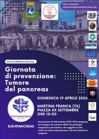 L’Associazione SUD4PANCREAS ODV-ETS si presenta ufficialmente alla cittadinanza con il suo primo evento pubblico, in programma domenica 19 aprile, a partire dalle ore 10.00, in Piazza XX Settembre a Martina Franca.