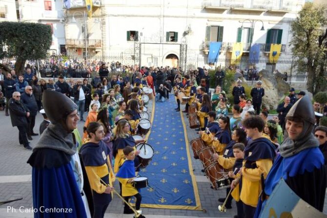 Nel programma del “fuori fiera”, Gravina diventa un teatro a cielo aperto dove tradizione e apertura internazionale si incontrano. L’energia della rassegna trova la propria naturale continuazione tra le piazze e i vicoli storici, trasformando il centro cittadino in un palcoscenico diffuso in cui il prestigio della tradizione si manifesta attraverso il Corteo storico Monfort 2026 e la lettura del Regio editto, insieme alle atmosfere del “Villaggio del Poverello” nel Rione Piaggio e alle “Scaramucce e giochi d’arme” in Piazza Notar Domenico.