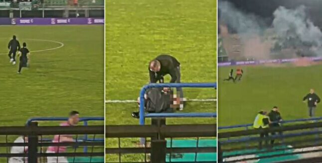 La cronaca della serata racconta un’escalation di tensioni iniziata ben prima del calcio d’inizio, con il lancio di fumogeni dal settore ospiti, e culminata in una vera e propria guerriglia urbana scatenata dal risultato sportivo negativo. L’esplosione di petardi e il tentativo massiccio di forzare le barriere per invadere il rettangolo di gioco hanno trasformato una competizione agonistica in un’emergenza di ordine pubblico. In questo clima di cieca animosità, a farne le spese è stato anche uno steward in servizio, colpito violentemente con un pugno da uno degli invasori: un gesto che evidenzia come il bersaglio di tale furia non sia l’avversario sportivo, ma chiunque rappresenti l’ordine e il rispetto delle regole.