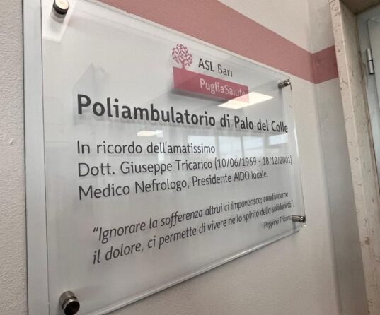 Il Poliambulatorio di Palo del Colle d’ora in poi porterà il nome del dr. Giuseppe Tricarico. Medico nefrologo e presidente Aido (10/06/1959-18/12/2001) che ha lasciato una traccia importante nella comunità, per la grande professionalità e umanità spese nella sua “vita breve ma intensa, dedicata all’amore verso il prossimo”.