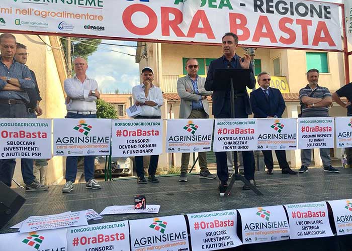 Sono anni che ci si affanna dietro questa problematica, ogni iniziativa è oggetto di commenti e azioni di personaggi spesso affetti da qualunquismo e da pressapochismo. Intanto la xylella avanza, risalendo sempre più velocemente la Puglia, distruggendo un patrimonio di 80.000 ettari. Fra pochi anni assisteremo alla distruzione dell’olivicoltura pugliese, uno dei pochi settori che ancora regge l’economia della nostra regione. Intanto l’UE sanziona la Regione Puglia per non aver adempiuto agli obblighi predisposti. L’UE oltre a comminare sanzioni dovrebbe intervenire in maniera strutturale rispetto ad una calamità senza precedenti. Come si ripristinano 80.000 ettari di patrimonio olivicolo distrutti? Con i 10 milioni di euro della misura 5.2. del PSR e i 32 milioni di euro della misura 4.1.C del PSR? Non riteniamo accettabile il rimpallo di responsabilità, soprattutto in una materia dove la Regione ha competenze dirette. Non si comprende il perché dell’immobilismo dell’Osservatorio Fitosanitario che non ha ancora notificato i provvedimenti di abbattimento sui focolai individuati ad Ottobre, nonostante le sollecitazioni delle imprese. I 29 ricorsi in più di tre anni non possono giustificare lo stallo attuale.