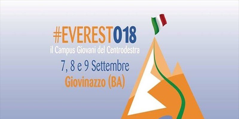 Al via venerdì 7 settembre la sesta edizione della manifestazione “Everest018”, il raduno nazionale dei giovani di Forza Italia in programma fino a domenica 9 settembre a “Riva del Sole” a Giovinazzo.