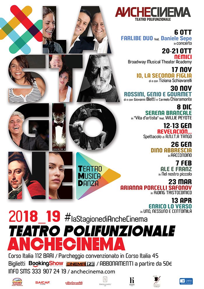 Il 6 ottobre riparte la stagione dell’AncheCinema. Saranno dieci gli appuntamenti per la nuova stagione del polifunzionale fra eventi di teatro, danza e musica. Quello che un tempo era il Teatro del “dopolavoro ferroviario” barese è già da circa due anni uno spazio multifunzionale a disposizione della città come contenitore culturale.