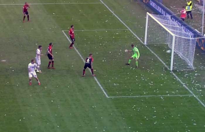La prima parte di gioco sembra condurre verso la fine con le due squadre più attente a non prenderla che a farla, con le difese più inquadrate e preparate degli attacchi, e con pochissime azioni degne di nota. Gli attaccanti leccesi, soprattutto, hanno pochissima aria per agire, mentre quelli del Foggia sembrano più a loro agio, ben supportati da Kragl e Gerbo, anche se Mazzeo non è quello ammirato finora. La sorpresa però arriva esattamente al 45 esimo minuto quando Calderoni in fase di impostazione si fa soffiare malamente il pallone dai piedi e il Foggia riesce a concretizzare l’azione con la palla che arriva a Deli che calcia magistralmente beccando l’angolino alla destra di Vigorito che non arriva sul pallone.