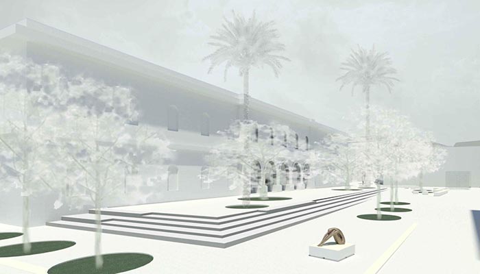 500 posti a sedere, 30 alberi di melograno, percorsi urbani di arte contemporanea con 10 blocchi espositivi, percorsi narrativi storici con epigrafi pavimentali, dei box espositivi e illuminazione artificiale con effetto chiaroscurale.