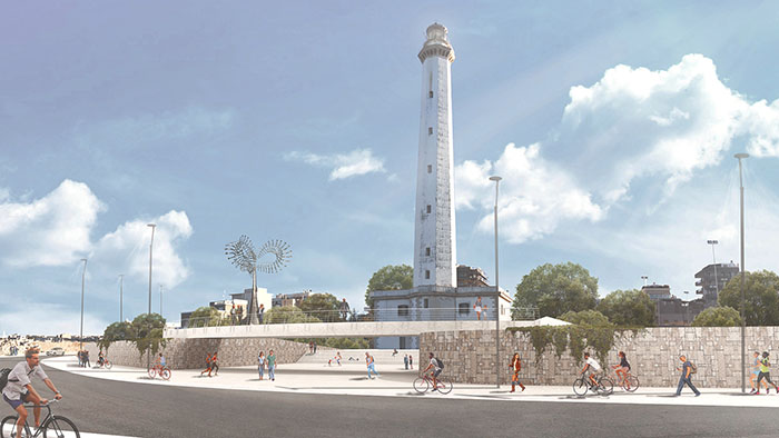 “Questo intervento di riqualificazione, curato dall’architetto Mauro Saito – commenta l’assessore ai Lavori pubblici Giuseppe Galasso – rappresenta una delle risposte dell’amministrazione comunale alle istanze presentate dagli abitanti di San Cataldo nell’ambito del percorso partecipativo del PUG, che ha visto una grande attività del comitato che gestisce il giardino condiviso della scuola Marconi. Obiettivo generale è quello di recuperare e rafforzare l’importanza storica e rappresentativa dell’area del Faro, individuata come futuro centro di attrazione del quartiere San Cataldo. Per questo, accanto al parco e alle spiagge, sono previste aree di sosta e d’incontro, come il teatro all’aperto, e opere d’arte pubblica, che andranno a configurare uno scenario di tradizione mediterranea, un luogo aperto che inviti alla socializzazione. Il progetto, da attuarsi per stralci, sviluppa la tendenza alla pedonalizzazione delle immediate adiacenze al faro”.