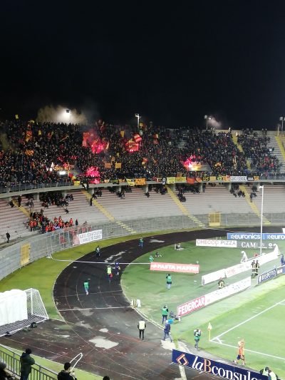 Non una partita come tutte le altre e lo si capisce dai minuti precedenti al fischio d’inizio. In mattinata arriva la notizia della scomparsa di Mimmo Renna, storico allenatore delle due squadre, rimasto nel cuore delle società che, infatti, si presentano sul terreno di gioco col lutto al braccio. Prima del fischio d’inizio il minuto di raccoglimento è da brividi. Qualche secondo dopo il coro lasciato partire dalla Curva Nord leccese “Siediti in panchina Mimmo Renna” completa alla perfezione l’omaggio ad un uomo di sport che ha dato la sua vita alla causa leccese (autore del famoso triplete Campionato di C, Coppa Italia e Coppa Italo-Inglese) e di altri club tra cui l’Ascoli, appunto.