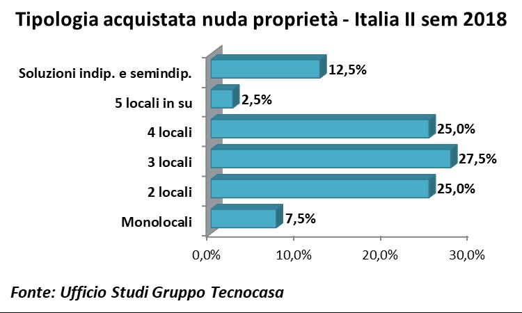 Sempre più spesso, soprattutto per avere una liquidità pronta, si vende la nuda proprietà di un proprio immobile, riservandosi il diritto di viverci per tutta la vita. Proprio su questo particolare tipologia di compravendita l’Ufficio Studi del Gruppo Tecnocasa ha realizzato un’analisi sulle compravendite di nuda proprietà effettuate nel secondo semestre del 2018 dalle agenzie affiliate su tutto il territorio nazionale.