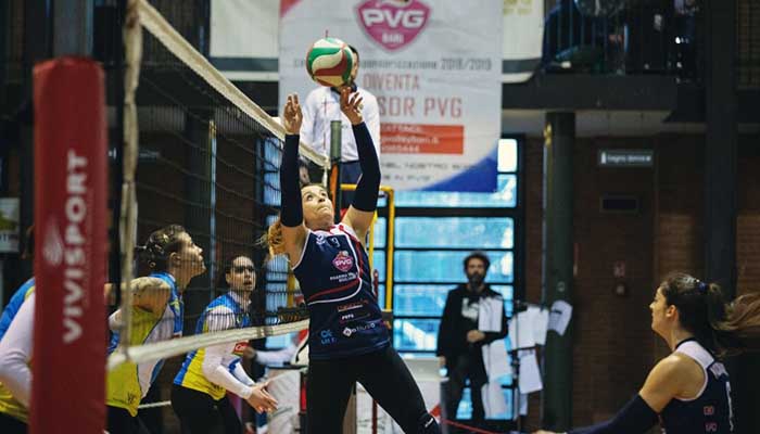 Mauriello e Martillotti colgono impreparate le baresi e scavano rapidamente un solco importante tra le due squadre: 2-7. Da posto 4, Pvg trova un pertugio per risalire, soprattutto con Cariello, top scorer premiata come miglior giocatrice della partita: 6-9. Da centro è Cesario a far la voce grossa nella prima frazione, l’ace di Minervini aumenta il gap: 7-14. Altra battuta vincente di Facendola, seguita dai colpi di una delle tante ex della partita, Paola Cesario: 8-19. Cerignola approfitta dei tanti errori locali e prende il largo. Mauriello mette a terra il 10-23, Martillotti la chiude sul 14-25.
