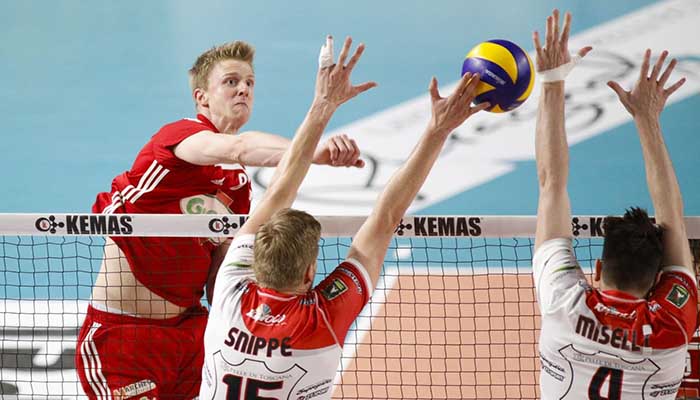 Al ritorno in campo, i lupi lavorano bene a muro con Miselli e Bargi (6-2) ma vengono immediatamente ripresi e sorpassati da Radziuk e soci (7-10, muro impressionante dello schiacciatore bielorusso su Lyutskanov). Ai tentativi di rimonta azionati da Colli e Snippe (13-15, 15-17) rispondono puntualmente i colpi letali in attacco di Prolingheuer e Radziuk (15-18, 15-19). A completare l’opera Real ci pensano il solito opposto tedesco, indomabile in fase offensiva, e Meringolo, autore dell’ace che ristabilisce la parità al PalaParenti (19-25, 1-1).