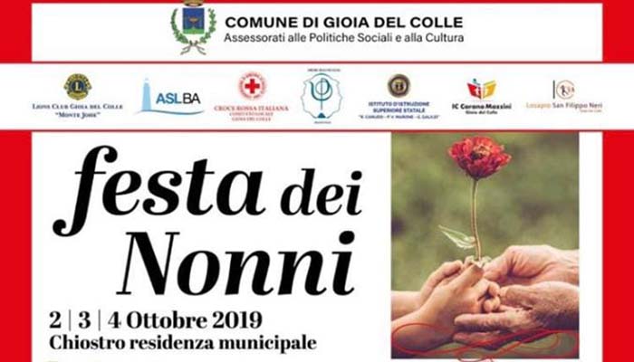 Da oggi e per tre giorni a Gioia del Colle (Bari) si celebra la festa dei nonni: un patrimonio inesauribile di affetto, esperienza, comprensione e amore per i propri nipoti, incondizionato e totale. Spesso supporto indispensabile per le famiglie e vero e proprio legante degli affetti e dei valori familiari alla radice della nostra società.