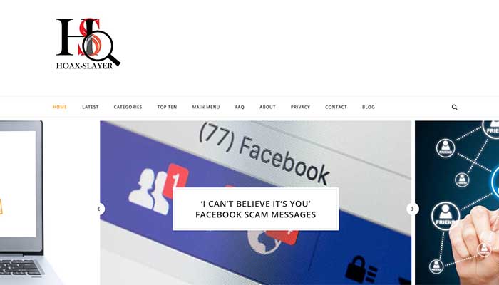Hoax Slayer è un sito web creato nel 2003 da Brett Christensen, dedicato all’analisi critica della veridicità delle leggende urbane . Mentre è meglio conosciuto per il debunking di false storie, ospita anche una pagina che elenca leggende urbane strane ma vere. È nato come Yahoo! gruppo prima della creazione del sito Web.
